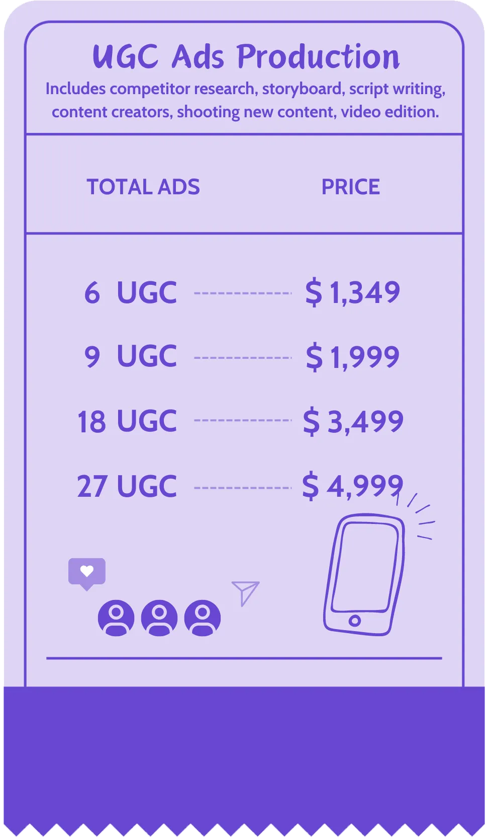 We started with the package of ads production as we were lacking our own content. First month we took the package of 18 UGC ads, second month 9 UGC ads and this month we will continue with the repurposing package as we have a solid base of content now. So far very happy with the ads the team at TWS has delivered!